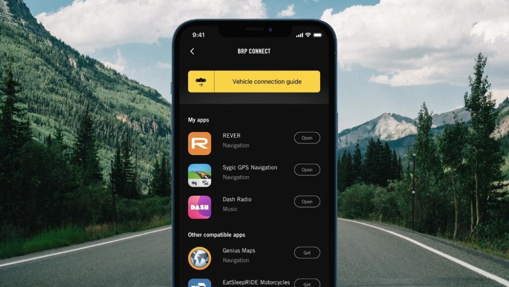 1. BRP Connect es compatible con aplicaciones dedicadas a la conducción, lo que reduce la sobrecarga de información.