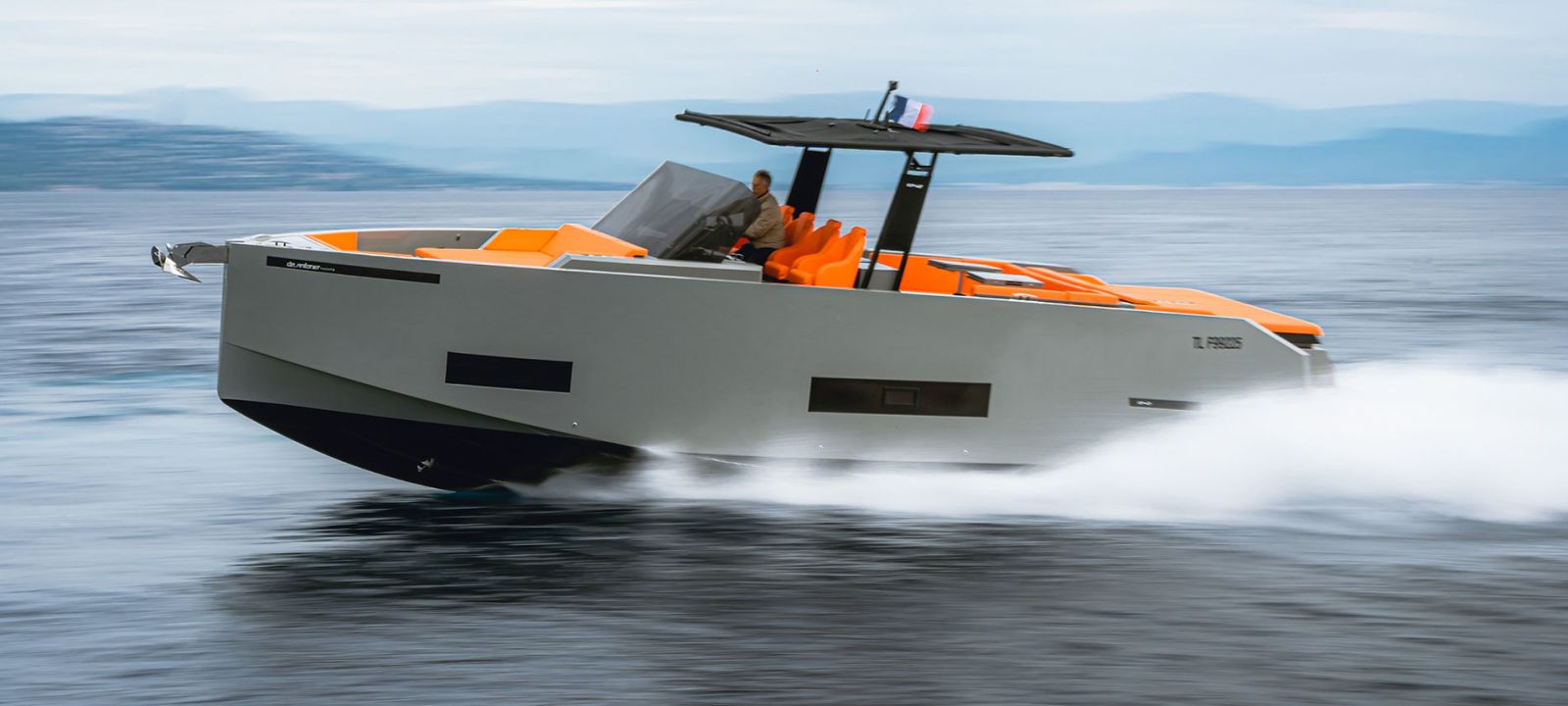 El D42 cuenta con 3 potentes motores fueraborda, más de 12 metros de eslora y un espacio que deja sin aliento. Este modelo presenta líneas muy puras y sencillas, diseñado para clientes muy exigentes.