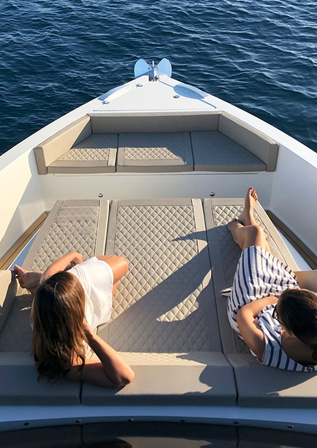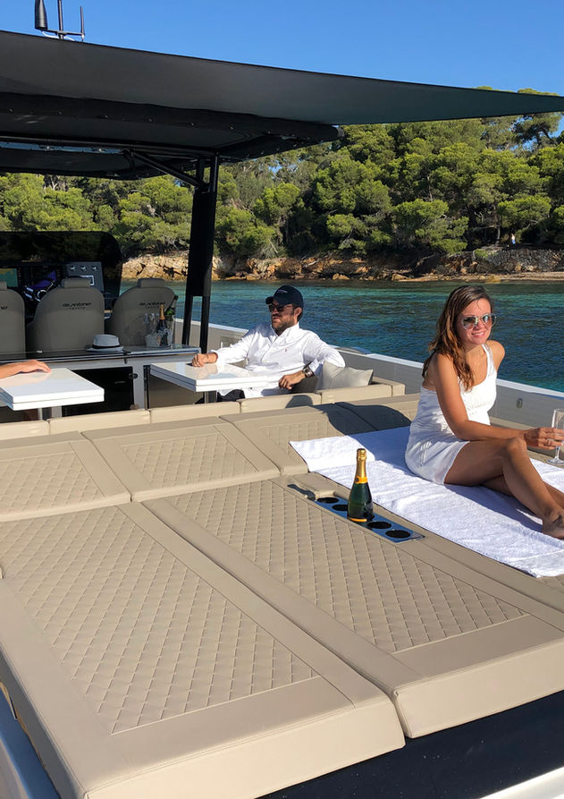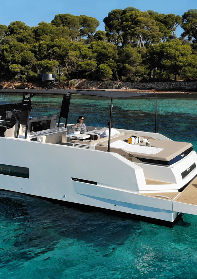 El D42 cuenta con 3 potentes motores fueraborda, más de 12 metros de eslora y un espacio que deja sin aliento. Este modelo presenta líneas muy puras y sencillas, diseñado para clientes muy exigentes.