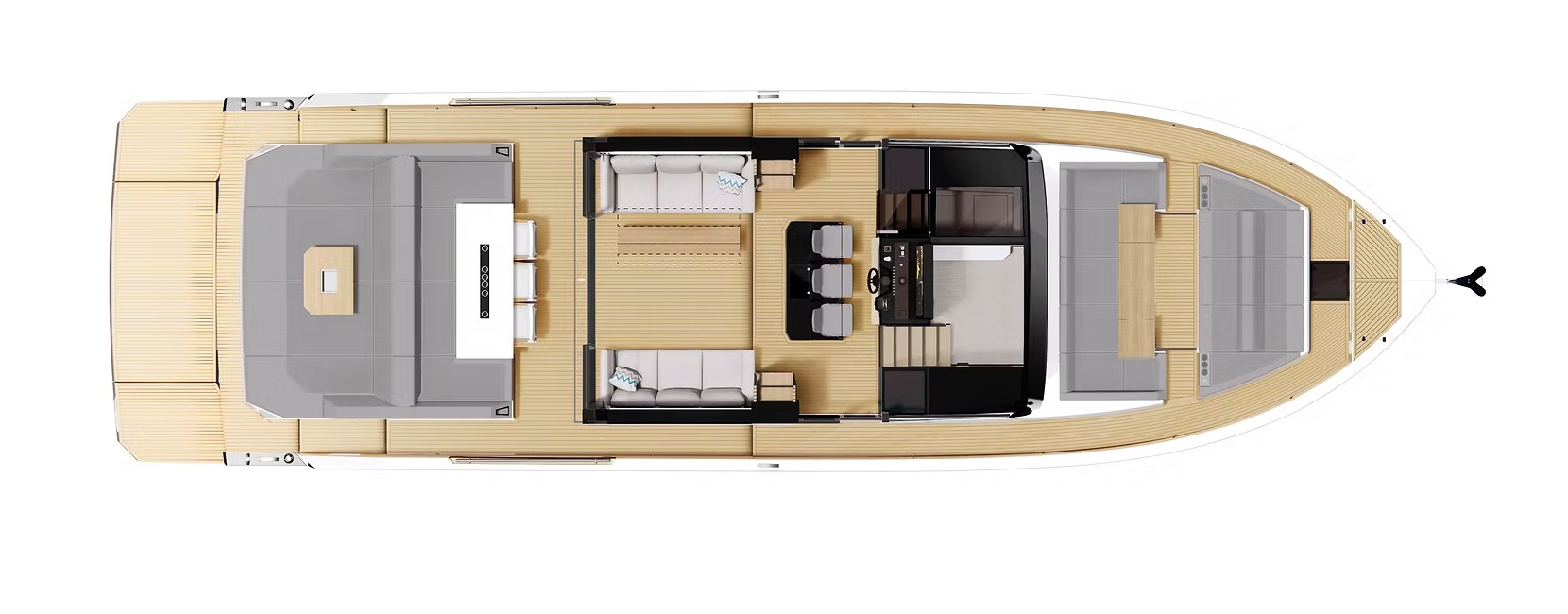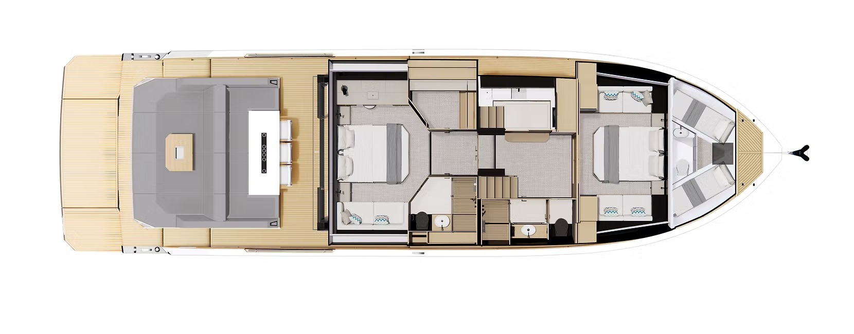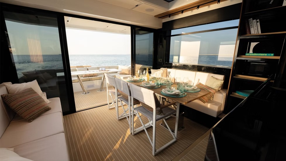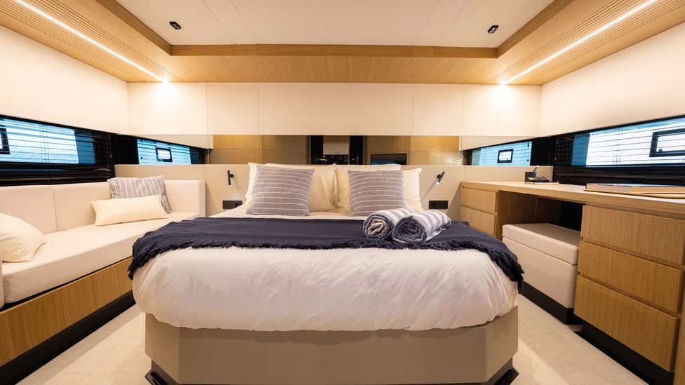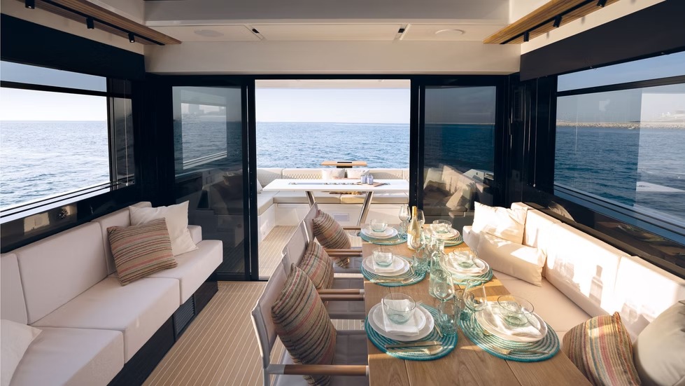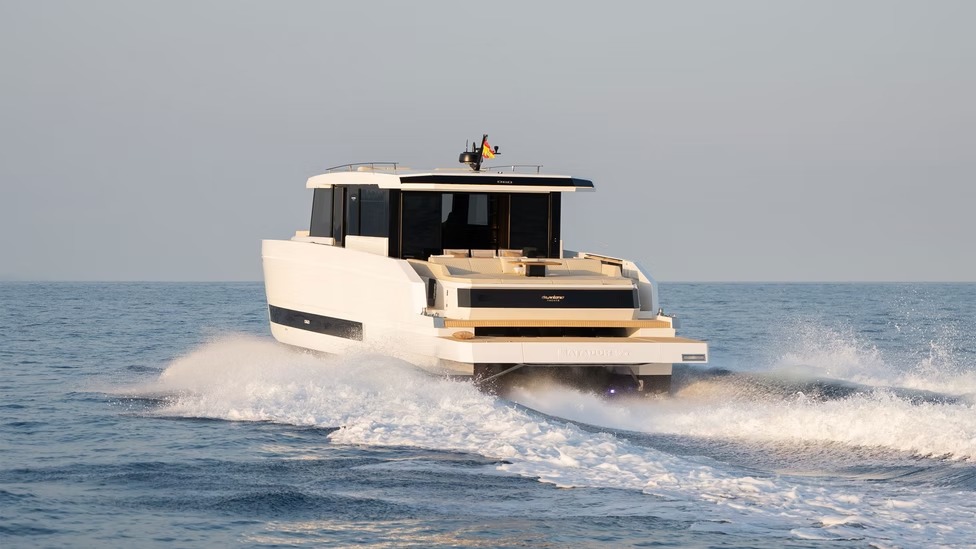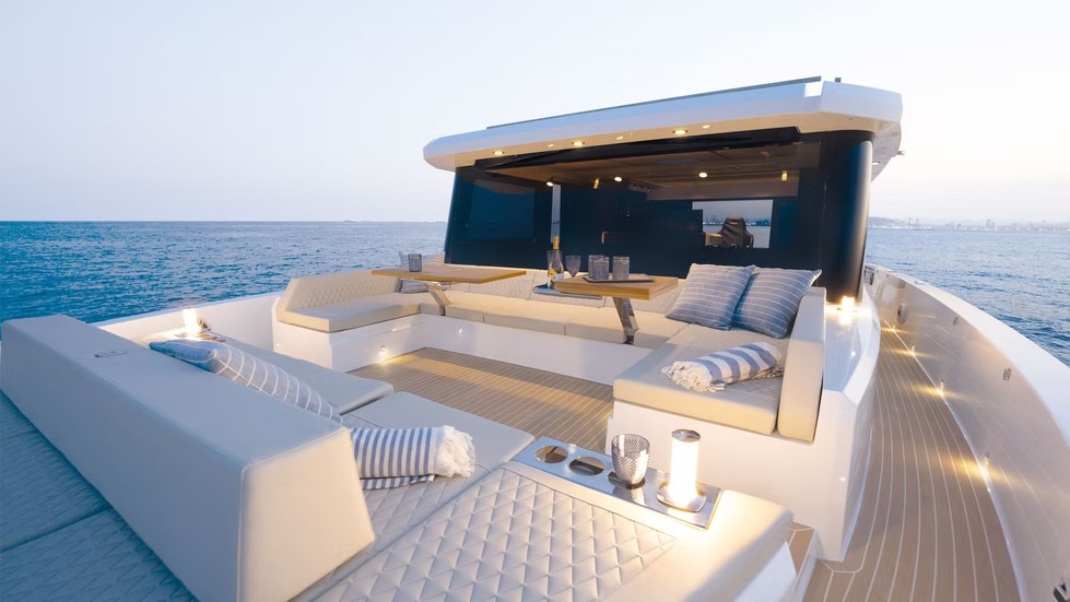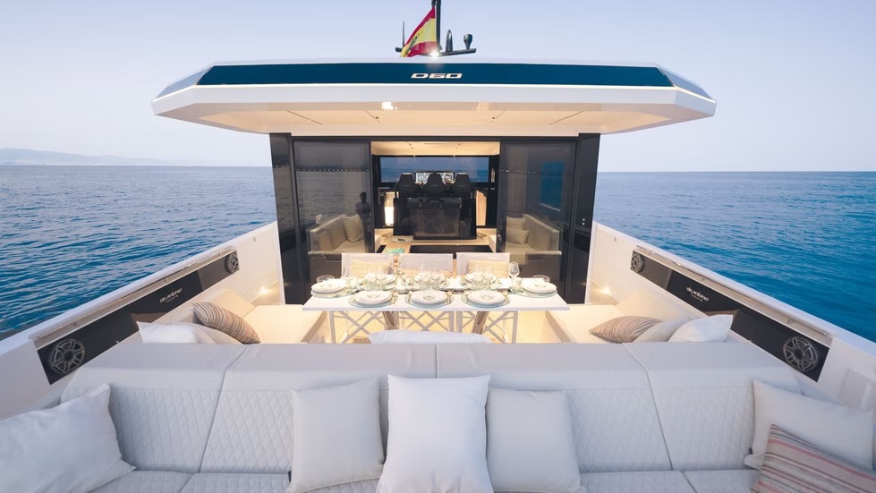 El D60 es un auténtico buque insignia que ofrece un rendimiento extraordinario y una comodidad de lujo. Con 4 motores fueraborda ocultos de hasta 2400 CV, alcanza velocidades de 46 nudos manteniendo la estabilidad y un manejo fluido. Su espaciosa distribución tiene capacidad para 12 personas en 2 o 3 camarotes, una cocina totalmente equipada y amplias zonas sociales, que incluyen un sofá en la cubierta de proa y un jacuzzi opcional.